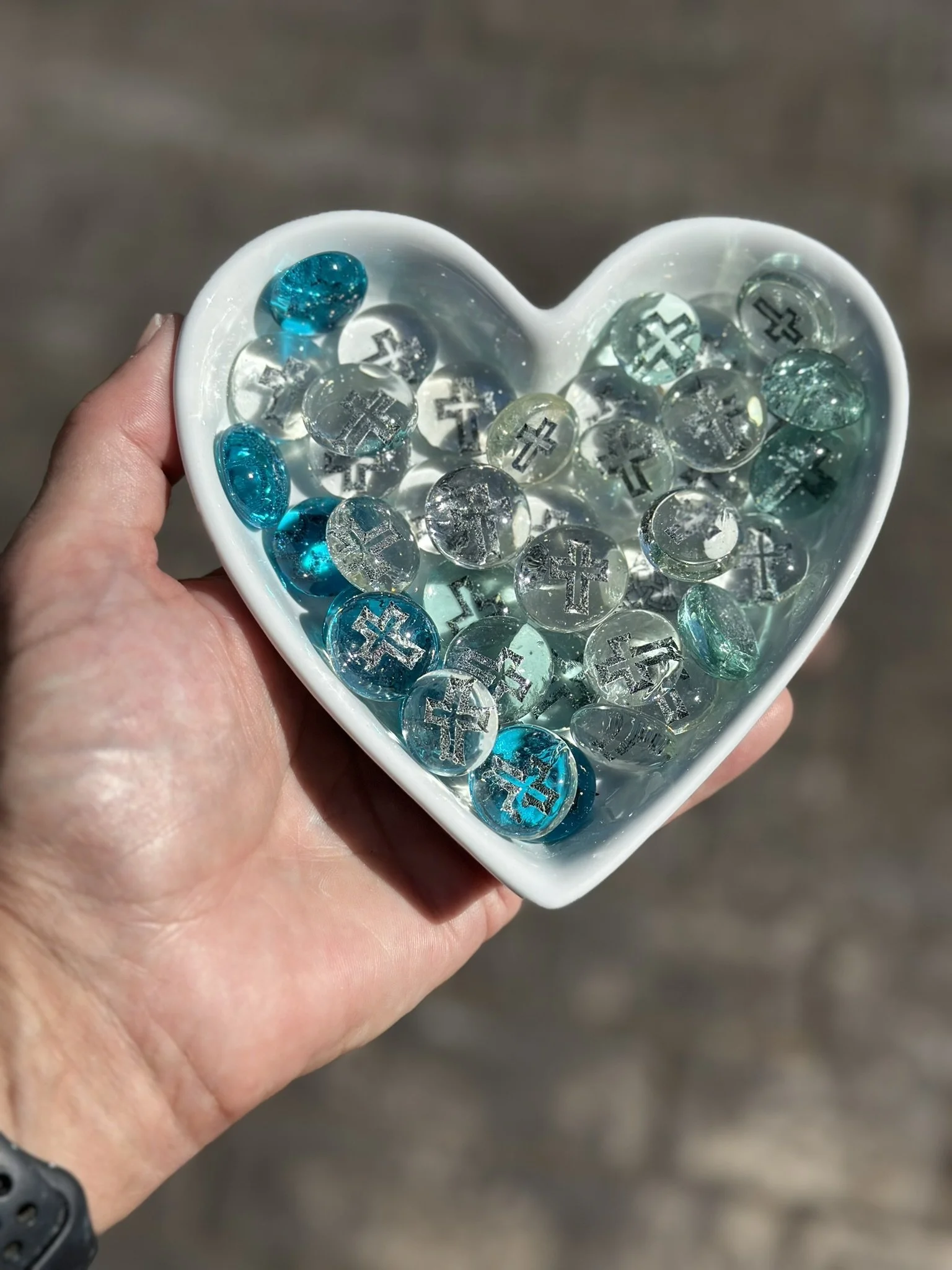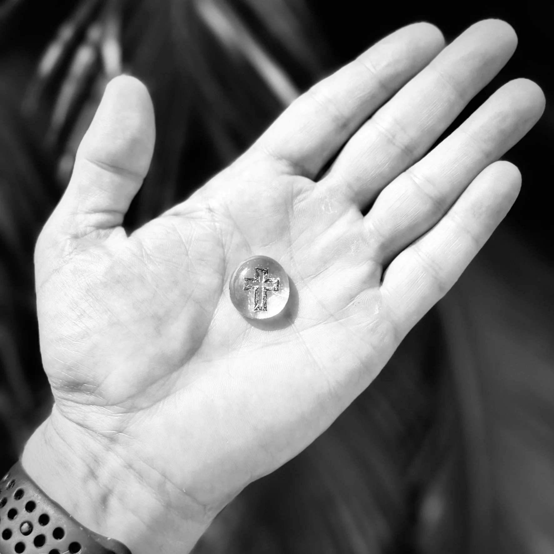 Poem Inspired by “The Cross In My Pocket” poem that accompanied the metal crosses my Mom would give when I was young…and “River’s Treasure,” the flat decorative glass gems I toss in our flowerbeds for my niece to discover like Easter eggs…year round.